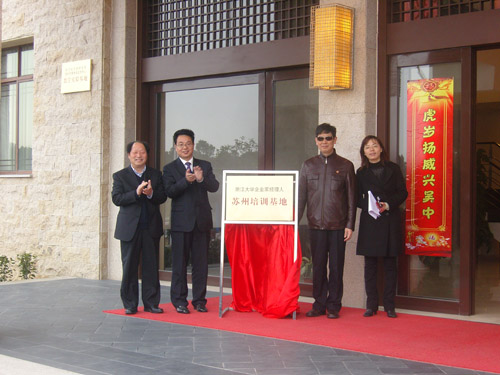 2011年2月25日8:10分,沐浴着和煦的春风,在《孙子兵法》诞生地、苏州第一山——穹窿山的山麓,浙江大学企业家经理人苏州培训基地揭牌仪式在苏州吴中孙武书院隆重举行。